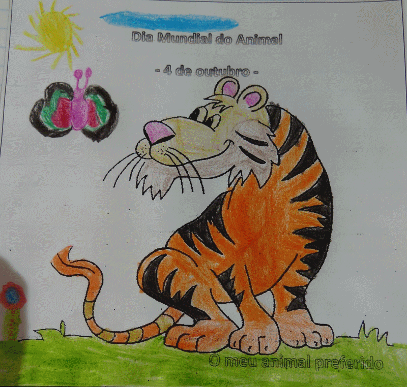 Na sala de aula, cada um de nós elegeu o seu animal preferido, fizemos uma pesquisa no computador, de onde retiramos uma imagem do nosso animal favorito, que colámos e ilustrámos no nosso caderno diário.