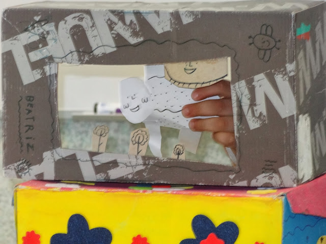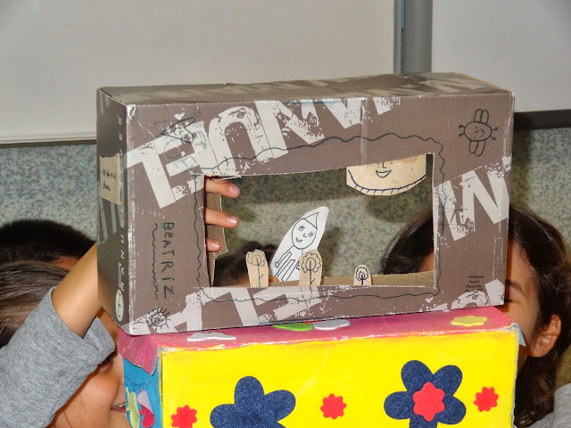 De cenário na mão, logo pela manhã me pediu se podia apresentar o seu teatro aos restantes colegas da turma.