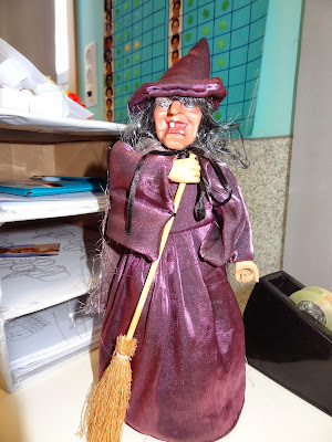 É uma bruxinha que o Ribeiro trouxe não só para comemorar connosco o dia das Bruxas, para nos fazer companhia agora que iniciámos uma nova aventura no nosso manual de português, cujas leituras só falam de...imaginem só...bruxas!
